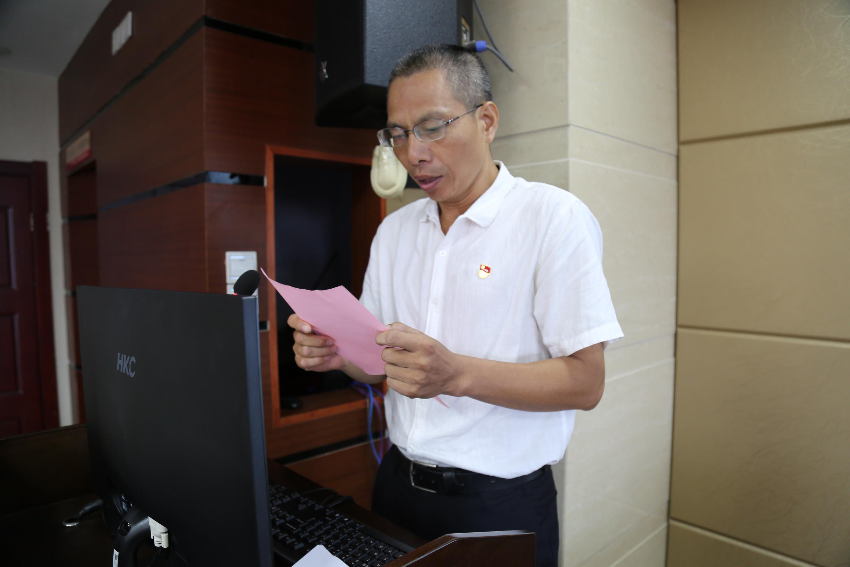 第十五黨支部書記童章杰朗讀了夏明翰寫給母親和妻子的家書
