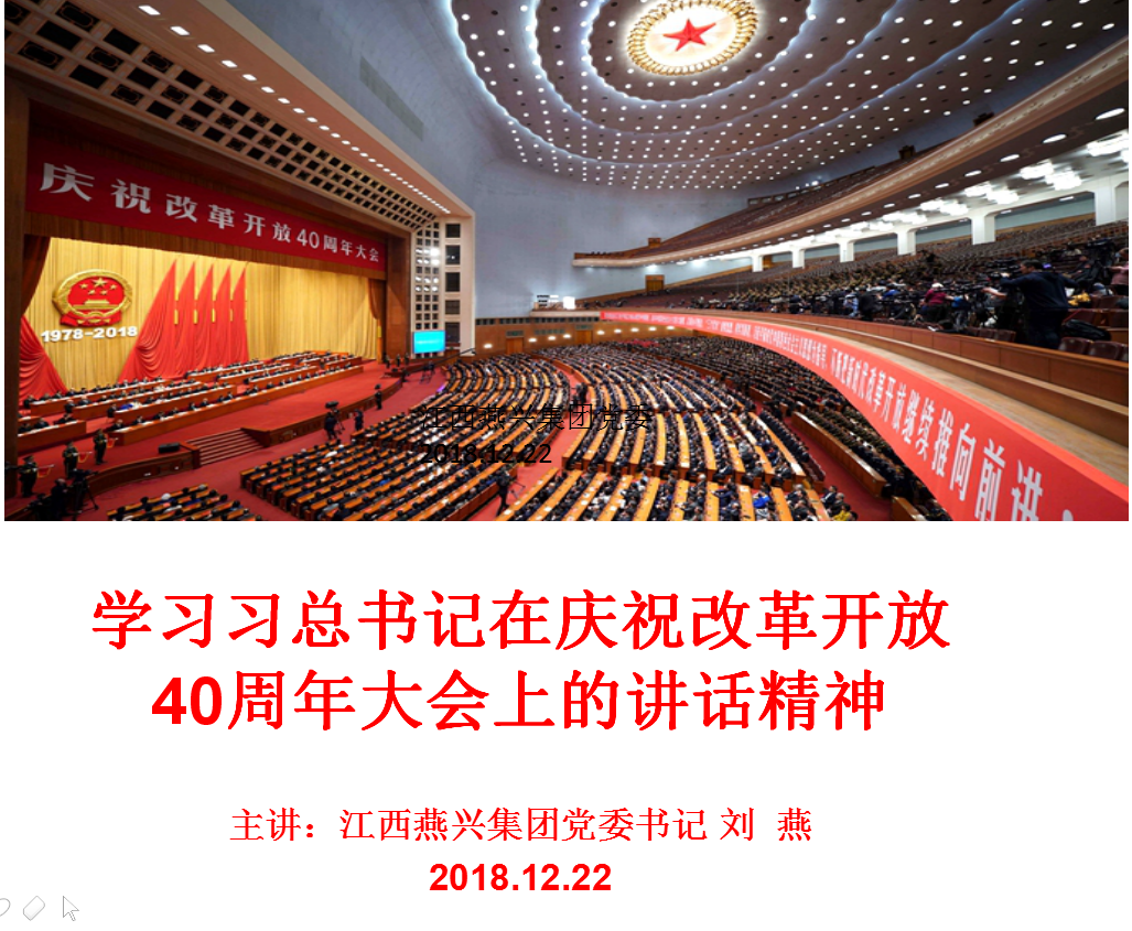 12月22日下午,江西燕興集團(tuán)黨委組織贛州城區(qū)的黨員和燕興集團(tuán)中層管理干部,學(xué)習(xí)習(xí)近平總書記在慶祝改革開放四十周年大會(huì)上的講話精神。