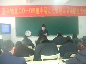1月15日,江西燕興物業管理有限公司舉行了二○一○年度中層以上管理人員述職報告會。會議由徐桂香副總經理主持。參加述職的人員有總公司各職能部門負責人、各小區(單位)服務中心負責人共55人,董事... 2011-01-28